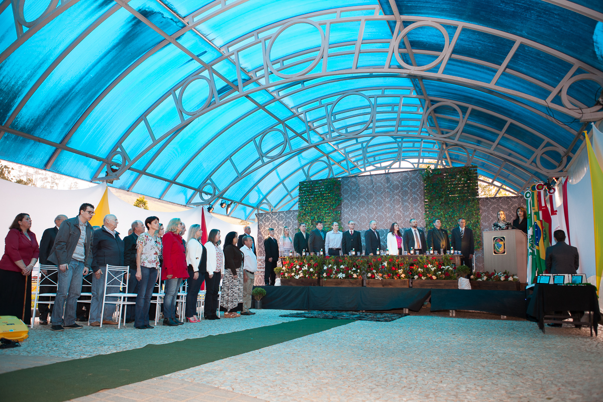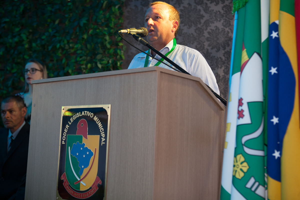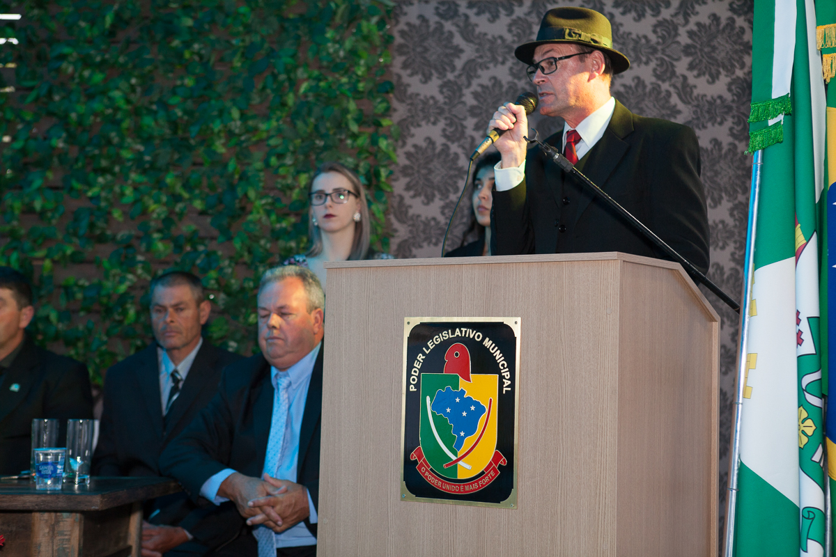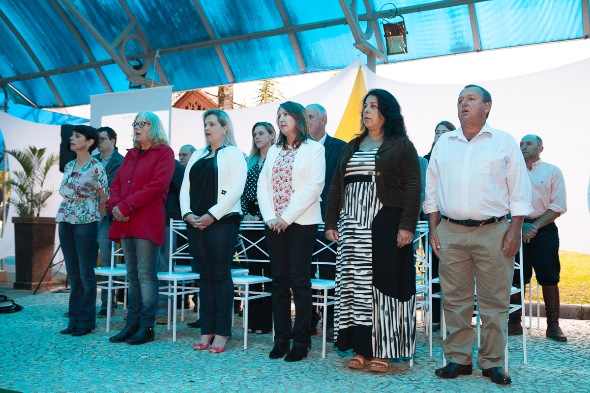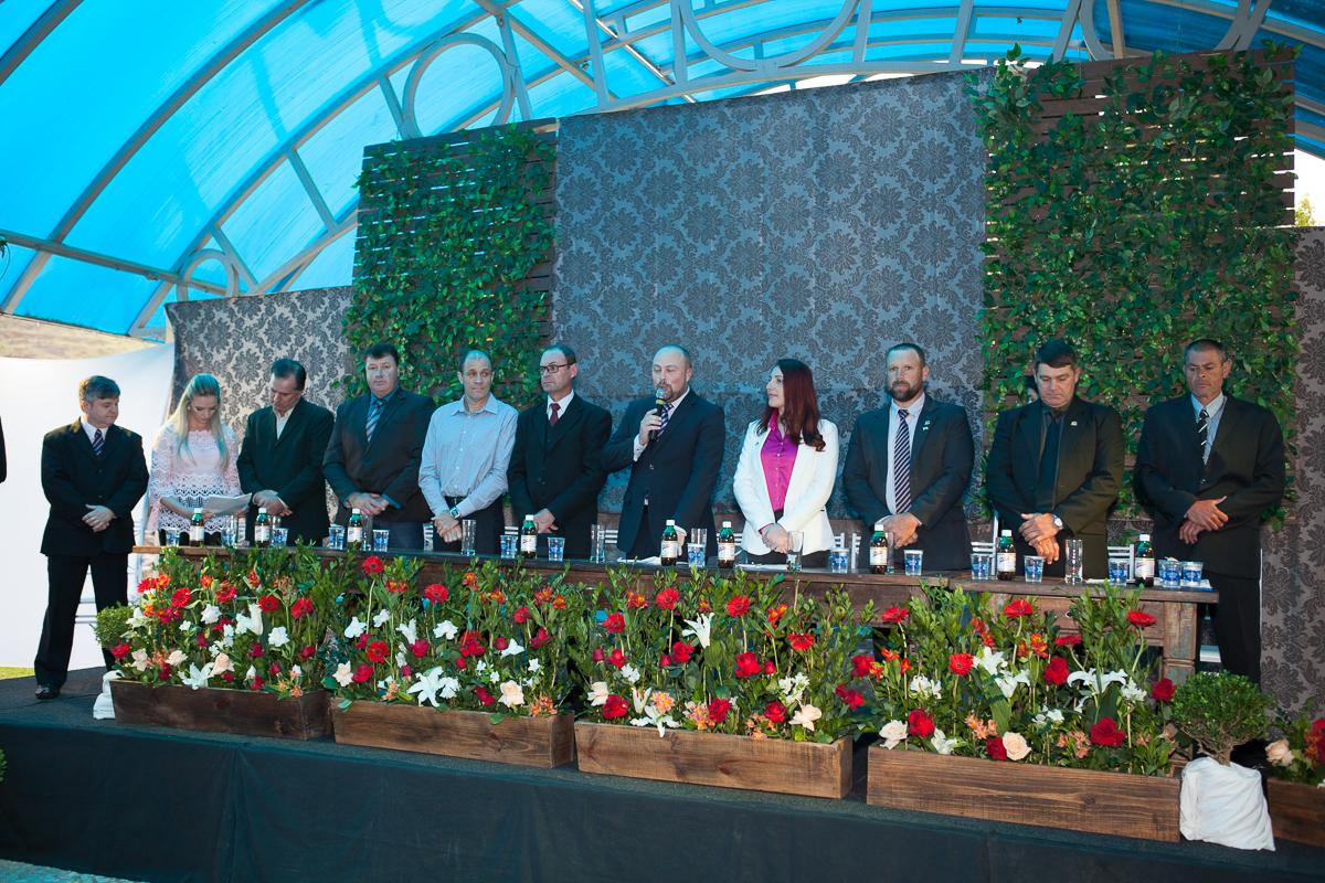 O primeiro ato foi o silêncio em homenagem ao ex prefeito Valcir Hugen, vulgo Tuti, que dedicou 28 anos de sua vida a política do município.
