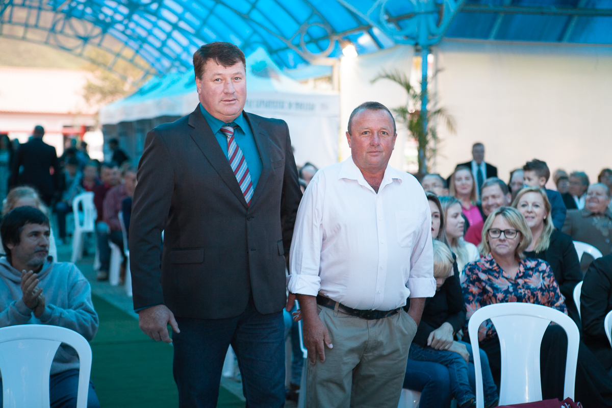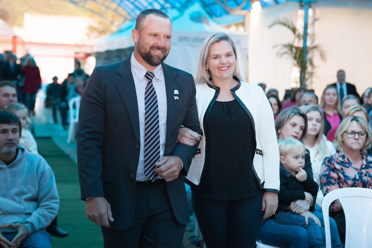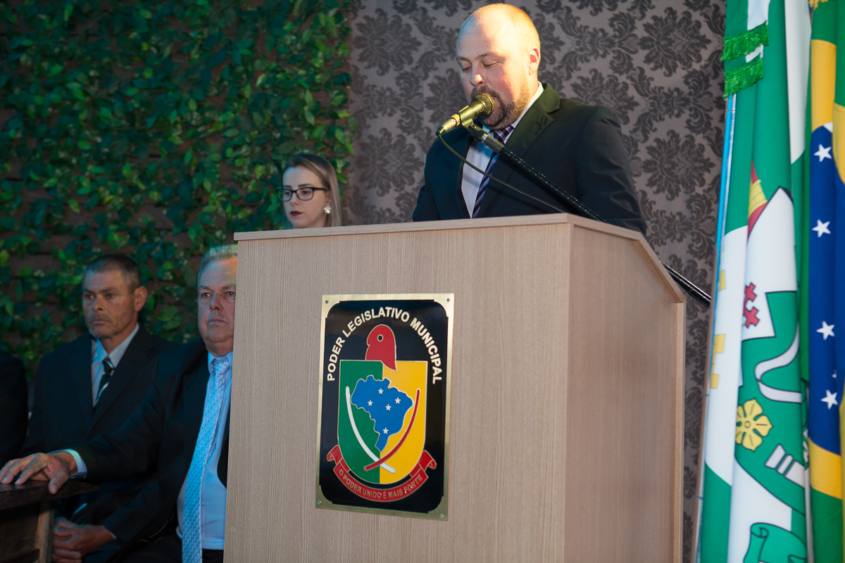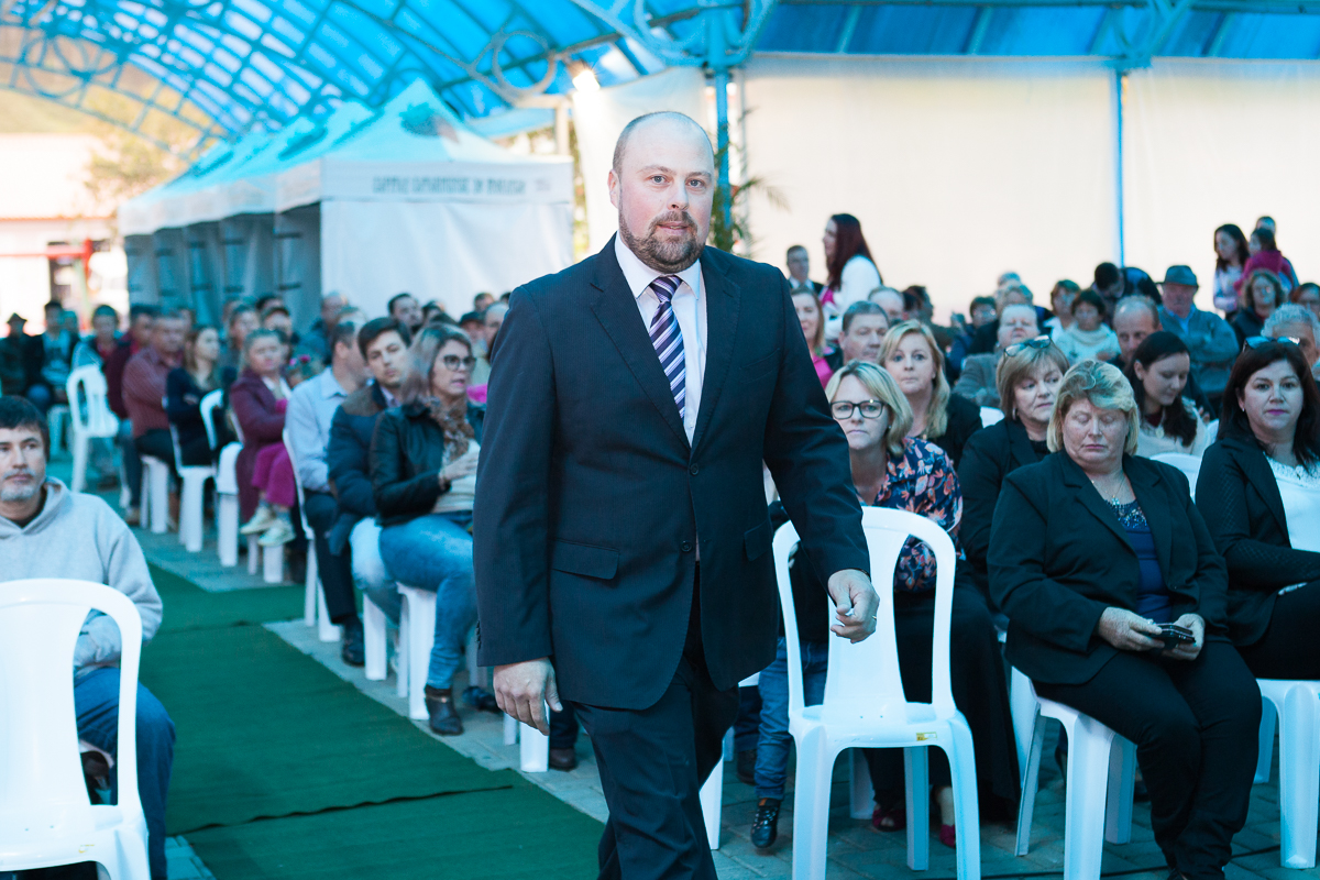 O primeiro ato foi o silêncio em homenagem ao ex prefeito Valcir Hugen, vulgo Tuti, que dedicou 28 anos de sua vida a política do município.