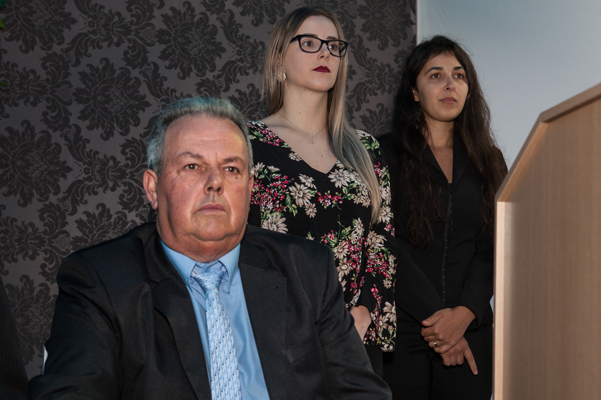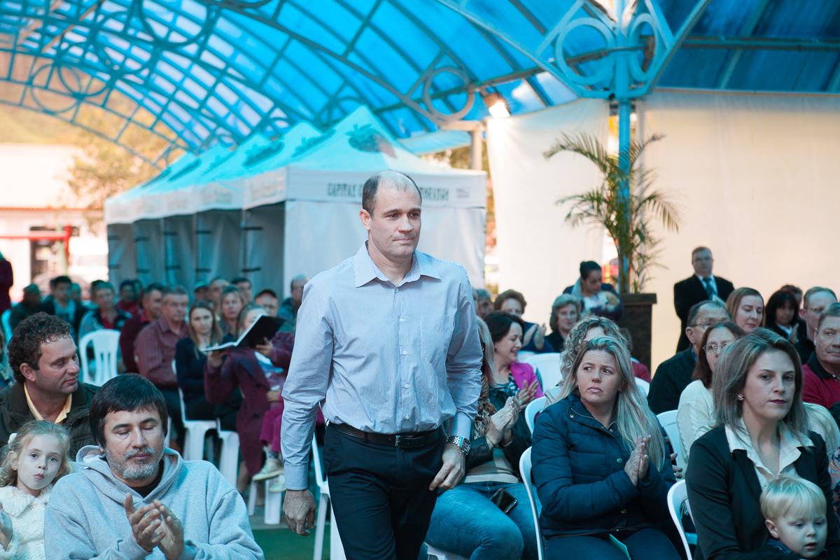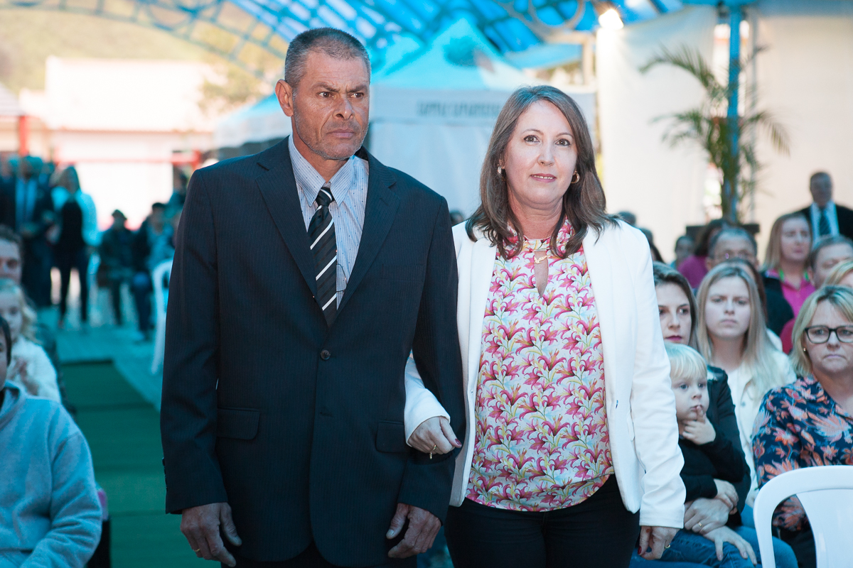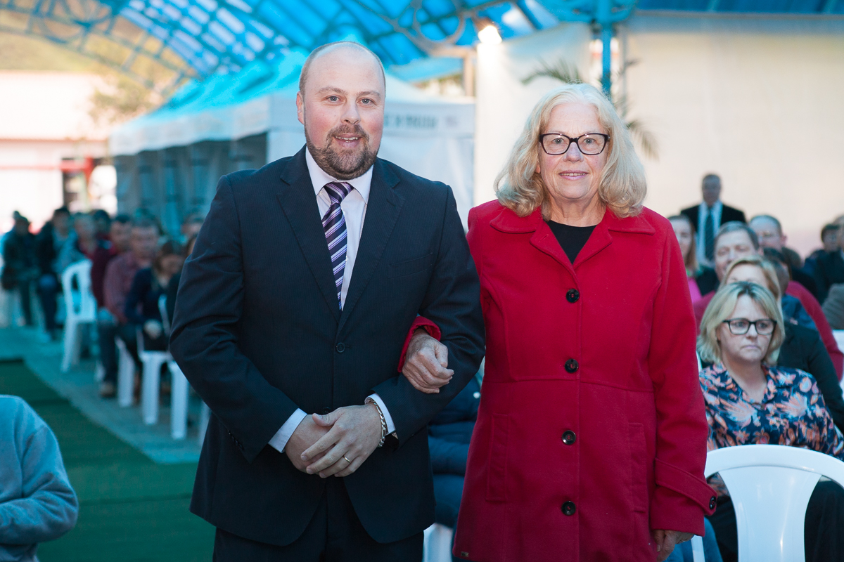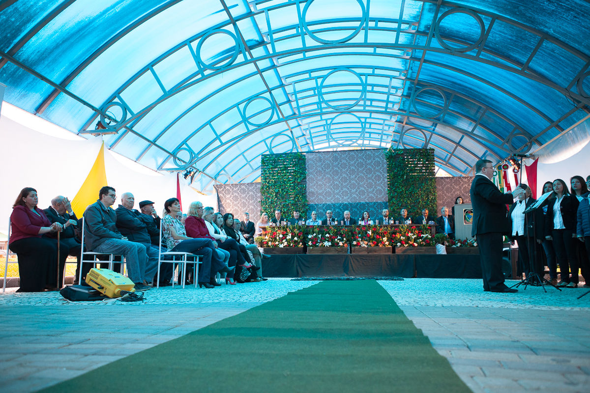 O primeiro ato foi o silêncio em homenagem ao ex prefeito Valcir Hugen, vulgo Tuti, que dedicou 28 anos de sua vida a política do município.